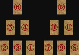 三角関係の鑑定なので、三角関係に特化したスプレッドを使います。一組ずつ、お二人の関係やお互いの気持ちを、過去・現在・未来で詳しく見ていくことができるので重宝です。
