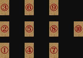 三者択一の鑑定なので、三者択一に特化したスプレッドを使います。あらかじめ選択肢A・B・Cを決め、それぞれの行方を見ることができます。