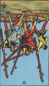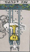 《聖杯の1》は「泉のようにあふれる愛」という意味ですが、逆位置なので、その愛を手に入れるのは難しいという暗示になってしまいます。しかしカード自体が非常に良い意味なので、これを正位置に逆転させることは可能です。上手に「対策」していけば、希望があります。